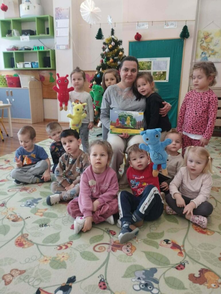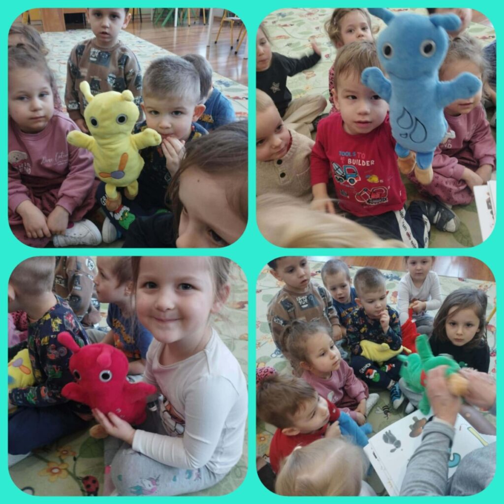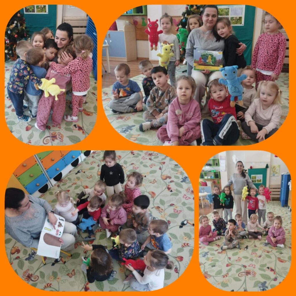 W najmłodszej grupie „Zielonej” realizowany był temat „My Friends” w ramach programu Bilingual Future. Dzieci z radością słuchały opowieści i chętnie powtarzały słówka, ucząc się poprzez zabawę.