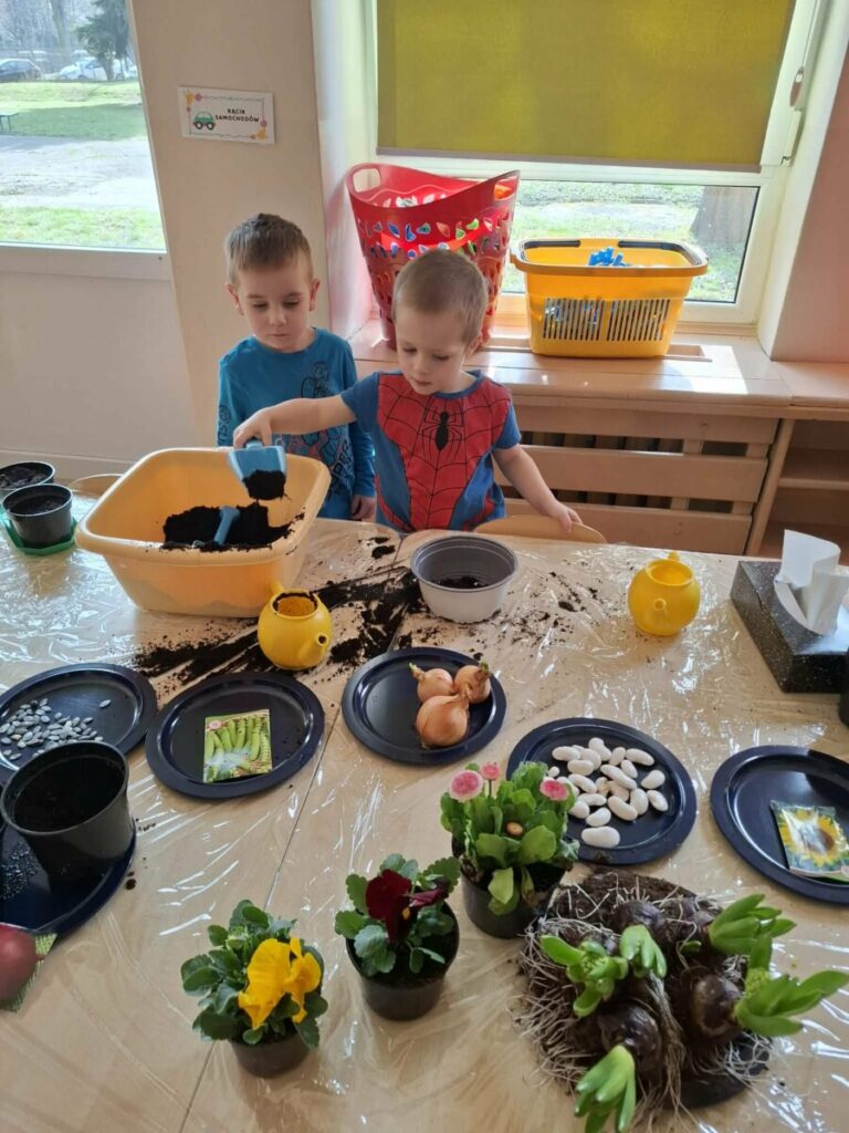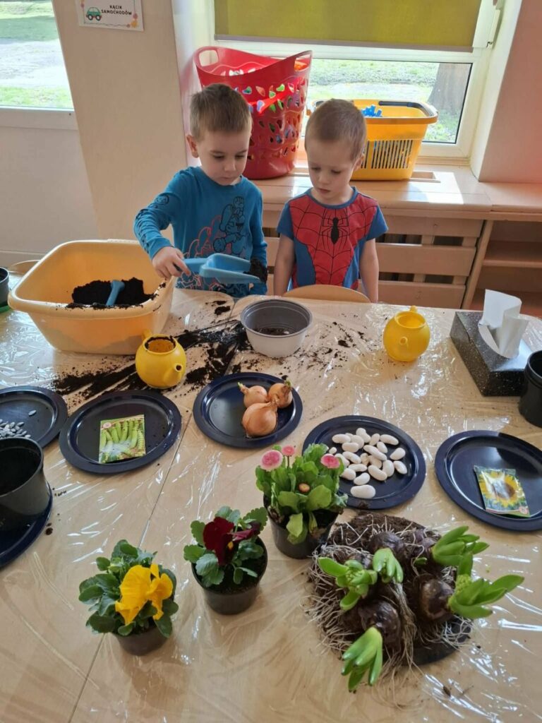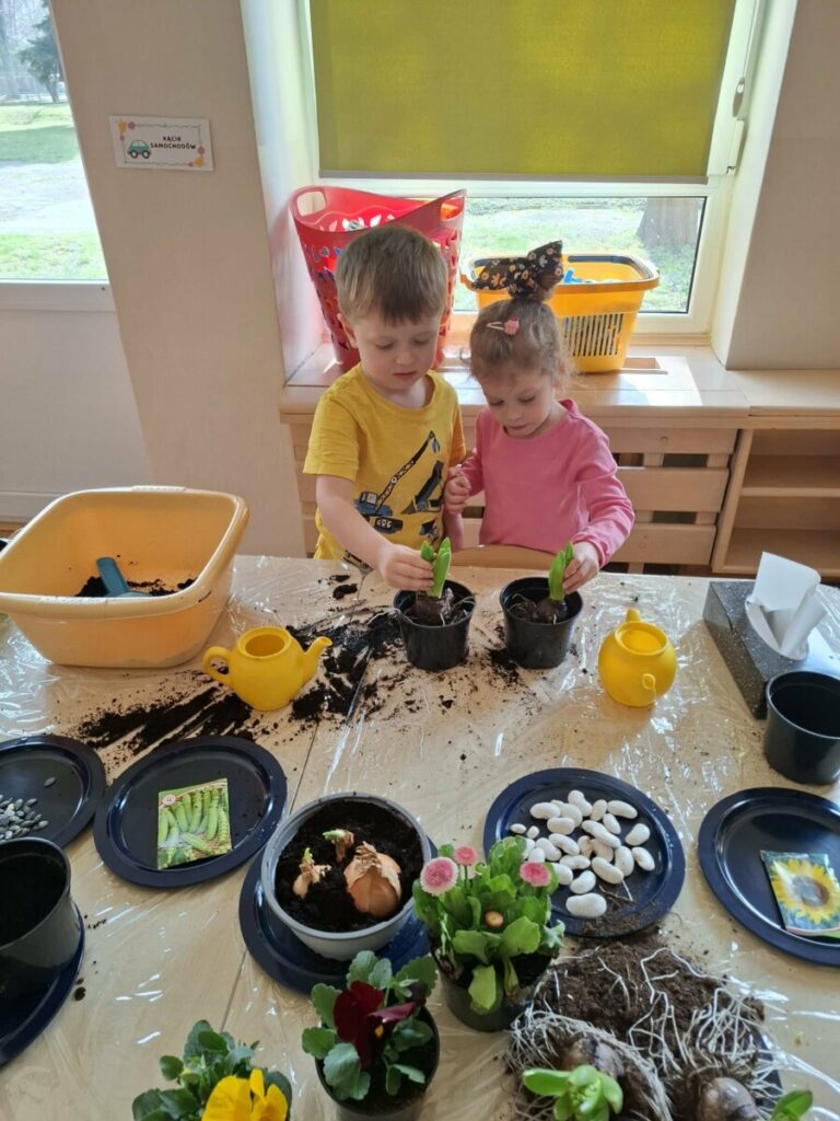 W Pierwszym Dniu Wiosny dzieci z grupy ,,Zielonej” zamieniły swoją salę w prawdziwy zielony ogródek. Z wielkim entuzjazmem sadziły rośliny, poznając etapy ich wzrostu oraz zasady pielęgnacji. Każde dziecko mogło posadzić własną roślinkę i obserwować jej rozwój. Wspólna praca sprawiła wszystkim wiele radości i była doskonałą formą nauki przez zabawę.