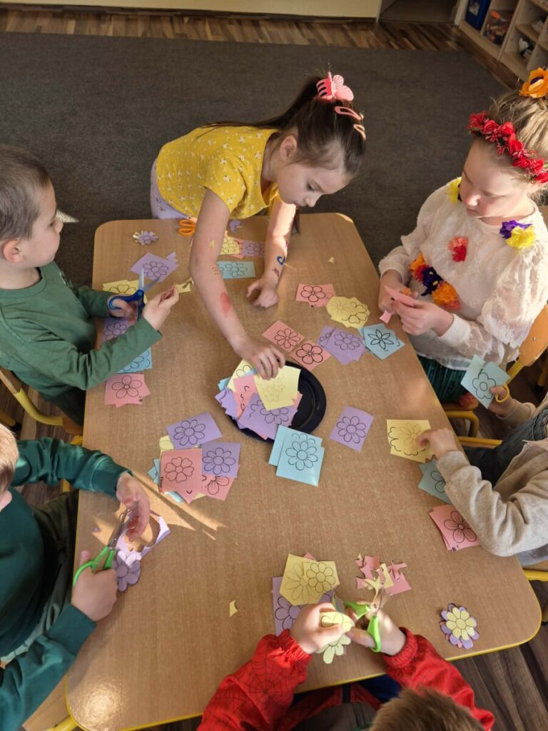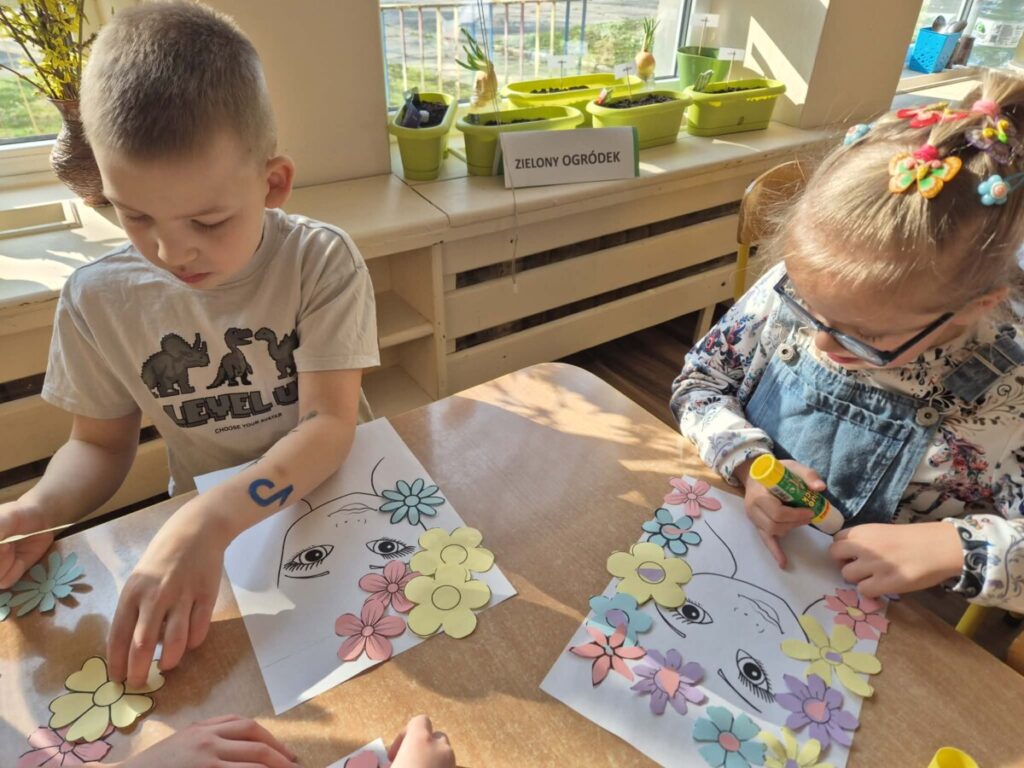 W piątek dzieci z grupy Żółtej z radością powitały nadejście wiosny. Tego dnia przedszkolaki przyszły ubrane w kolorowe, wiosenne stroje. Wspólnie śpiewały piosenki, tańczyły oraz rozwiązywały zakodowane hasła. Nie zabrakło także zabaw ruchowych i pracy plastycznej, podczas której dzieci wykonały portret Pani Wiosny.