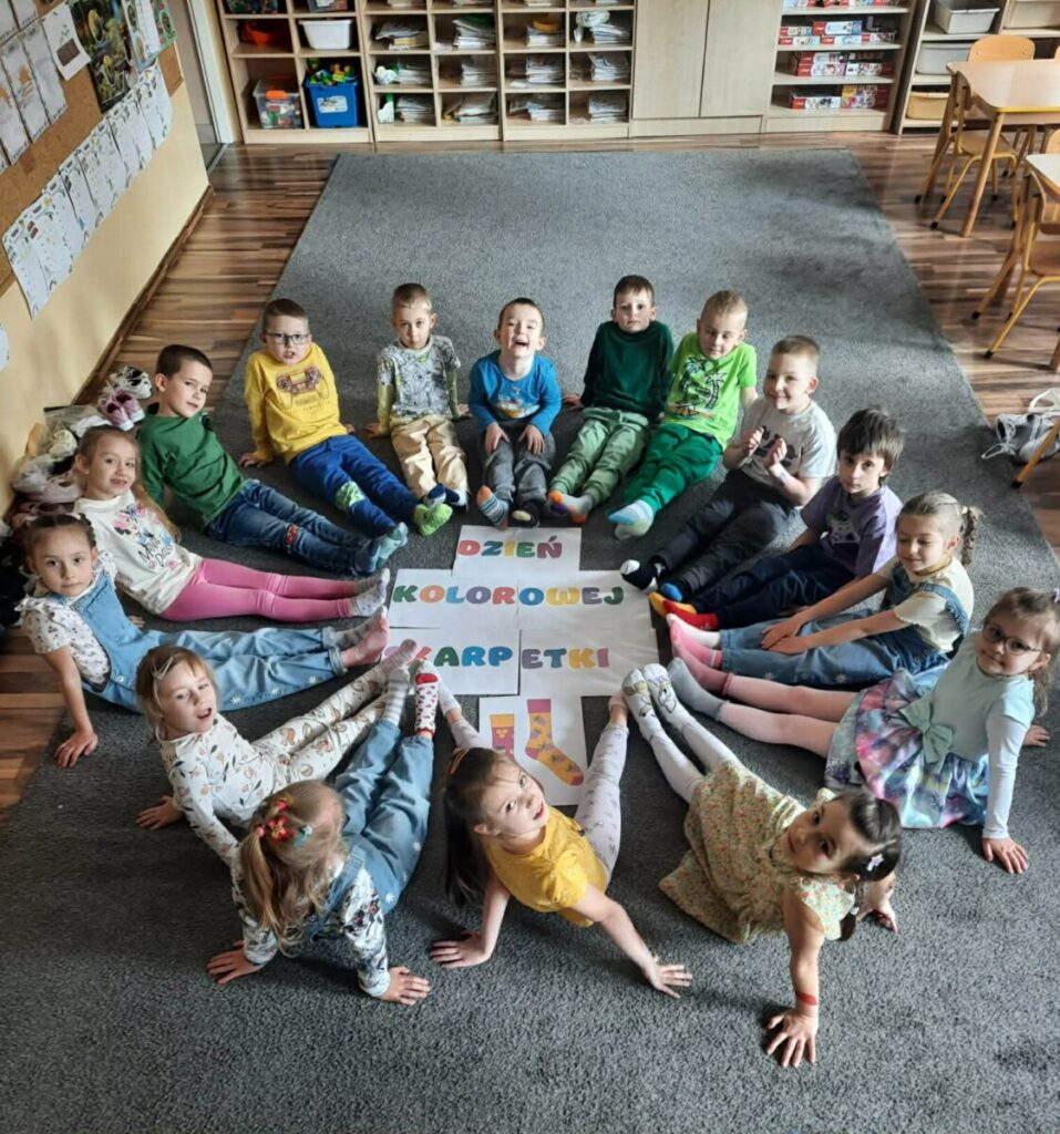 Dodatkowo obchodziliśmy Dzień Kolorowej Skarpety, który był doskonałą okazją do rozmów o akceptacji i różnorodności. Dzieci z zaangażowaniem uczestniczyły w zajęciach, prezentując swoje wyjątkowe, nie do pary skarpetki. Nauka poprzez zabawę sprawiła przedszkolakom wiele radości i zachęciła je do dalszego odkrywania świata kodowania oraz otwartości na innych