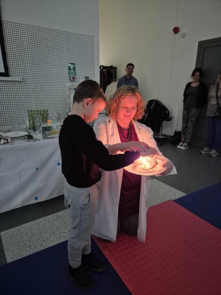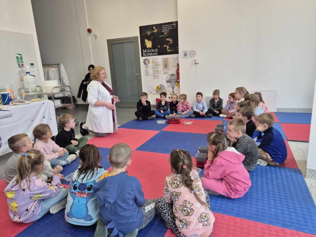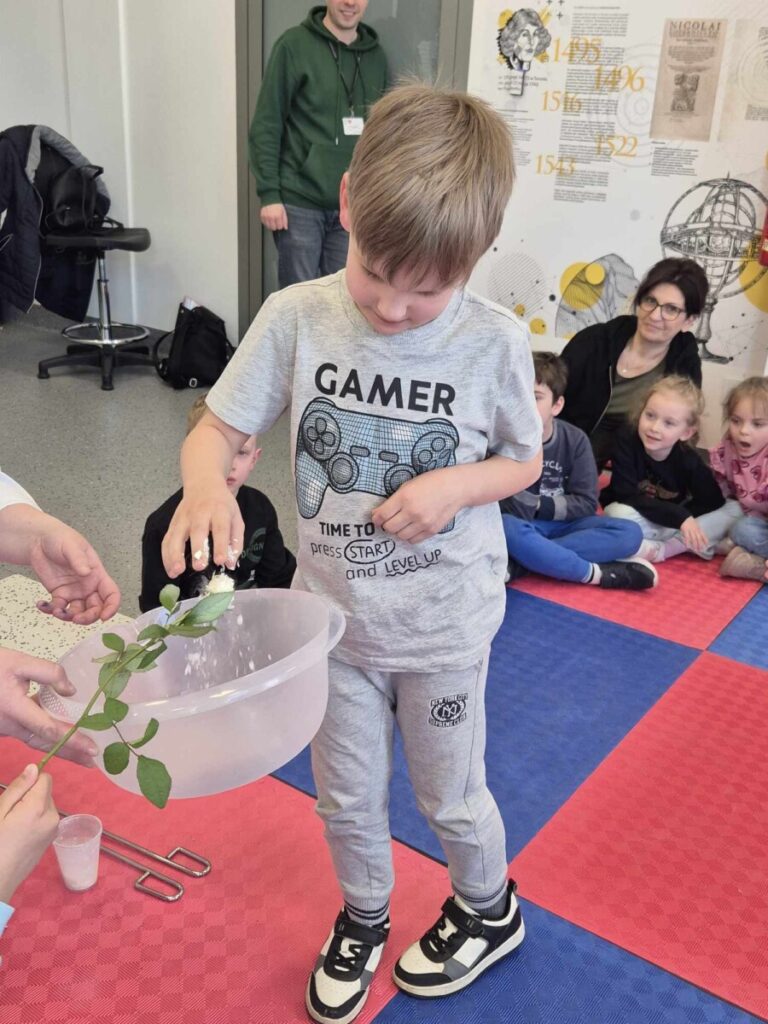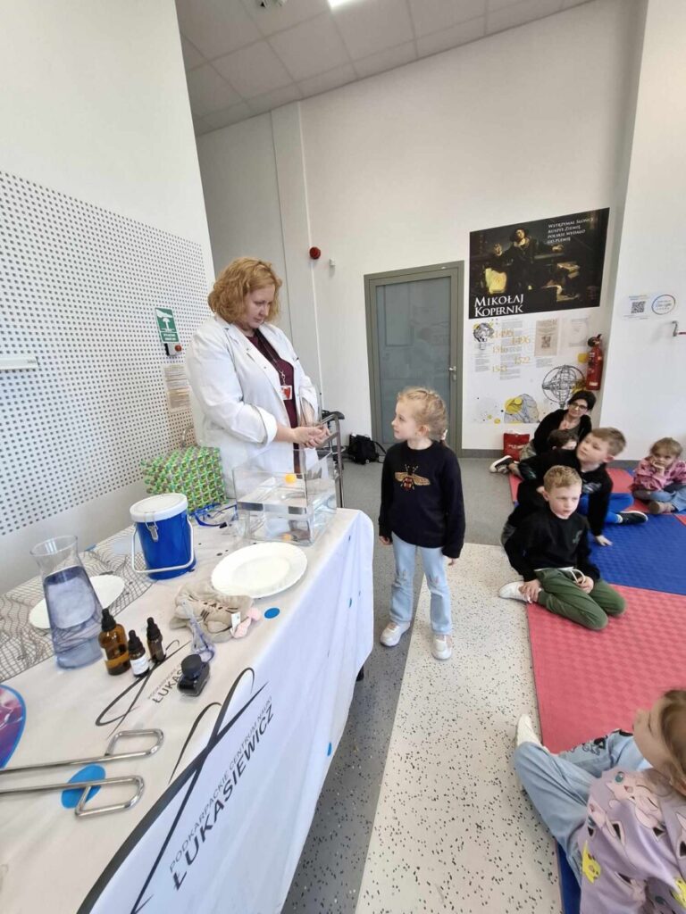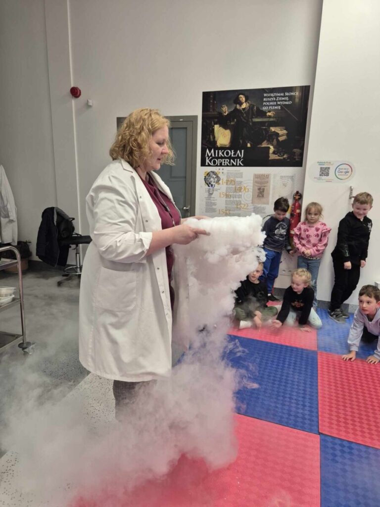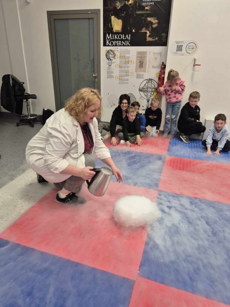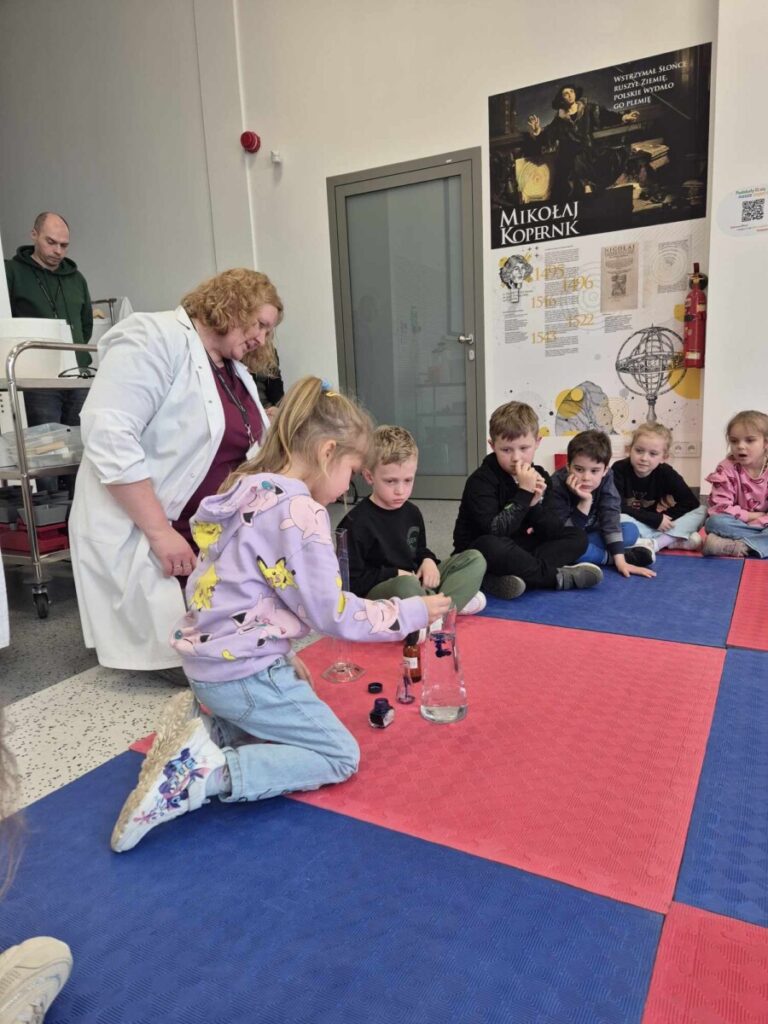 Wczoraj grupa „Biedronki” wybrała się na wycieczkę do Podkarpackiego Centrum Nauki Łukasiewicza, gdzie uczestniczyła w warsztatach „Przedszkolatorium” – pełnych fascynujących eksperymentów. Podczas zajęć dzieci miały okazję odkrywać niezwykłe zjawiska przyrodnicze , biorąc udział w ciekawych doświadczeniach. To wyjątkowe połączenie nauki i zabawy rozwijało ich ciekawość oraz inspirowało do dalszego poznawania świata.