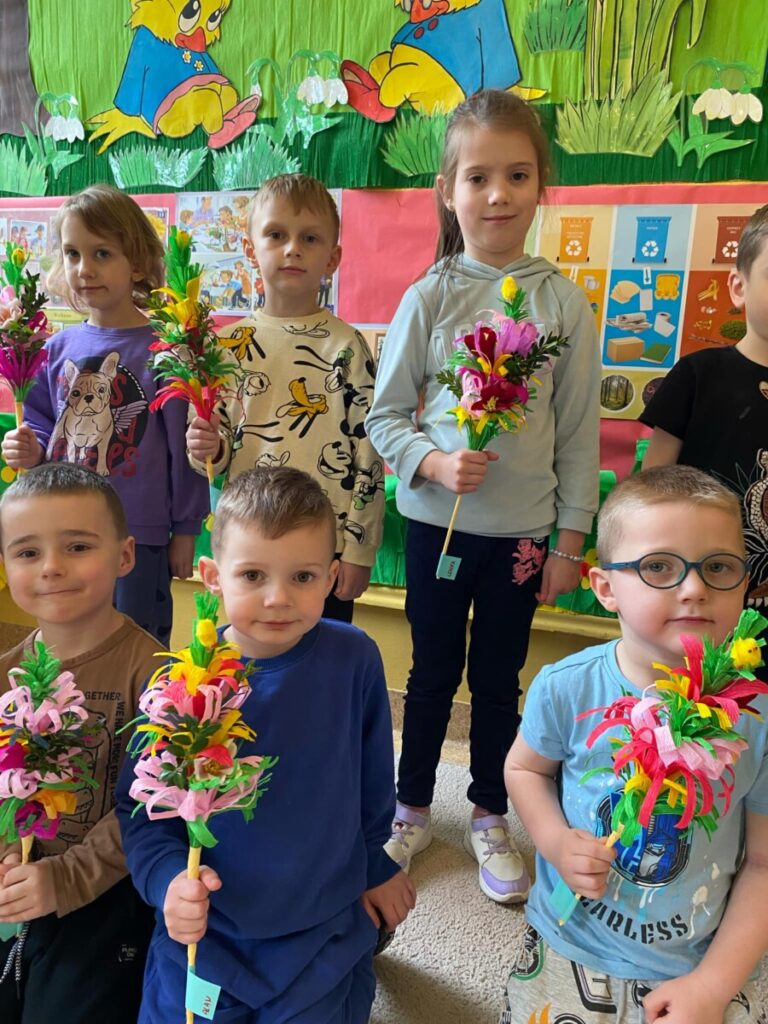 Grupa „Słoneczka” melduje gotowość na Niedzielę Palmową. Każda palma inna, kolorowa, strojna po prostu piękna, zrobiona z sercem.
