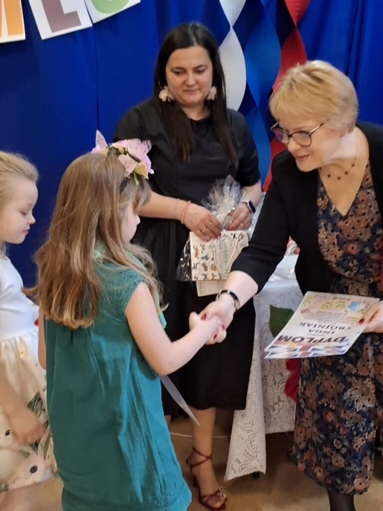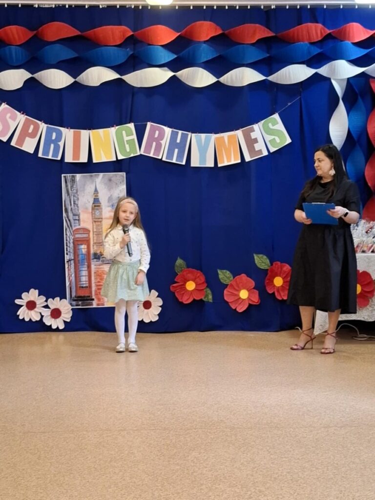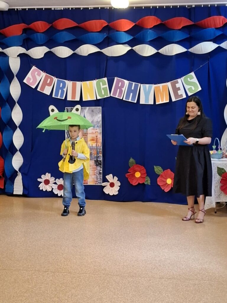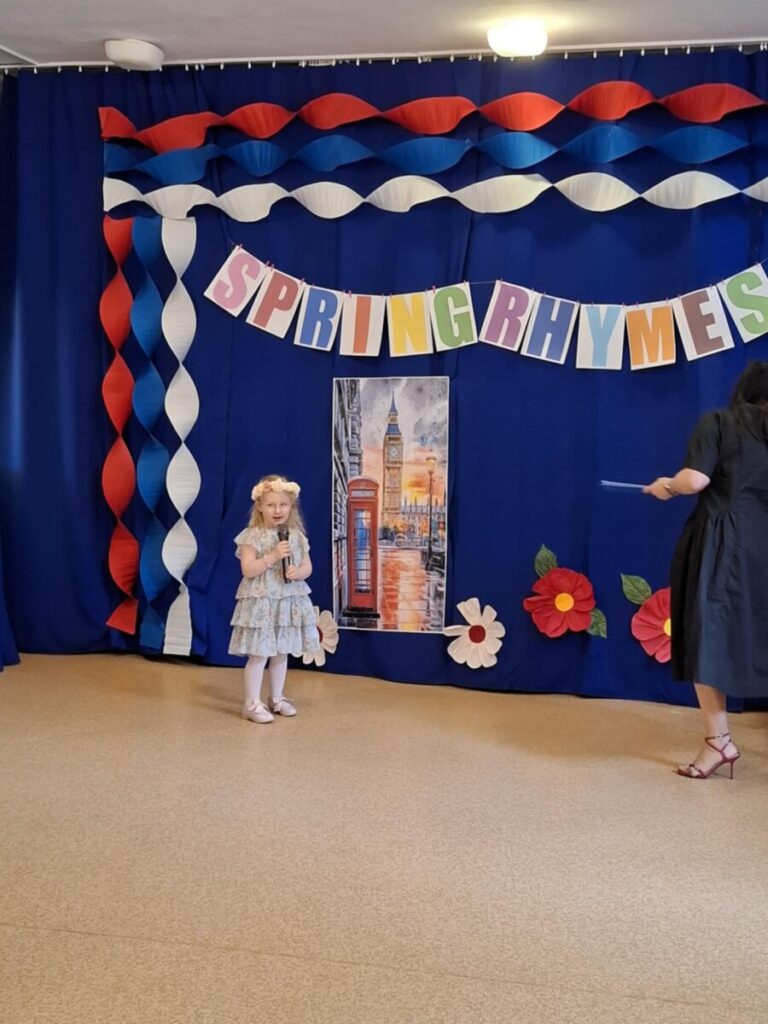 Podczas wydarzenia mogliśmy wspólnie cieszyć się nauką języka angielskiego oraz podziwiać piękne prezentacje przygotowanych wierszy. Dodatkową atrakcją był występ wokalno-taneczny w wykonaniu dzieci z grupy „Wiewiórki”, przygotowany specjalnie dla gości i uczestników konkursu. Serdecznie dziękujemy wszystkim dzieciom i nauczycielom za zaangażowanie, stworzenie wspaniałej atmosfery oraz radosnej zabawy.