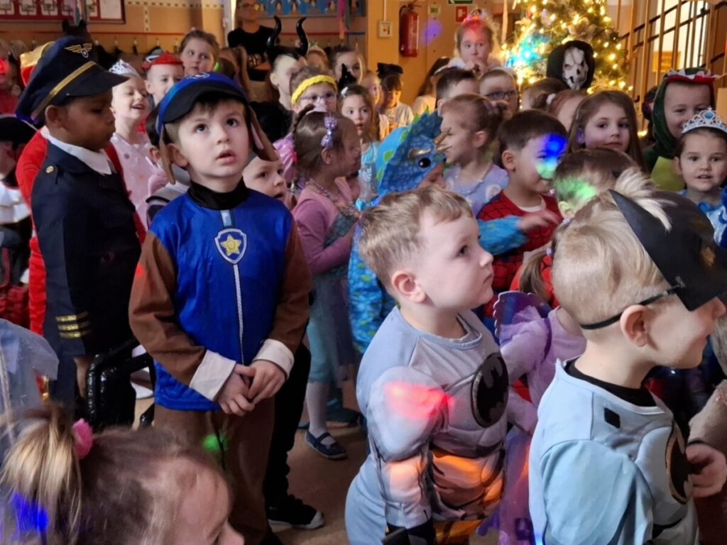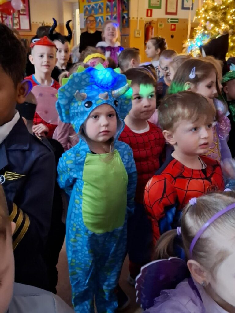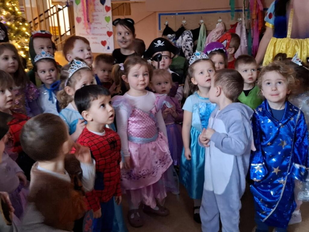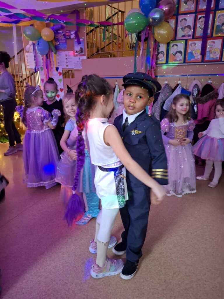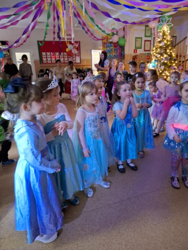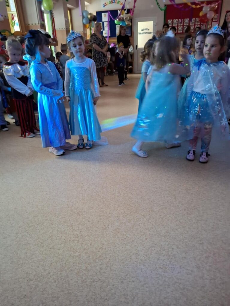 Bal Karnawałowy w przedszkolu. Kolorowe stroje, radosna muzyka i mnóstwo uśmiechów. Dzieci bawiły się wspaniale, a ten dzień na długo pozostanie w naszej pamięci.