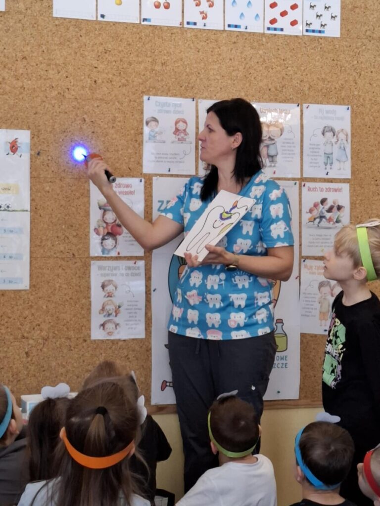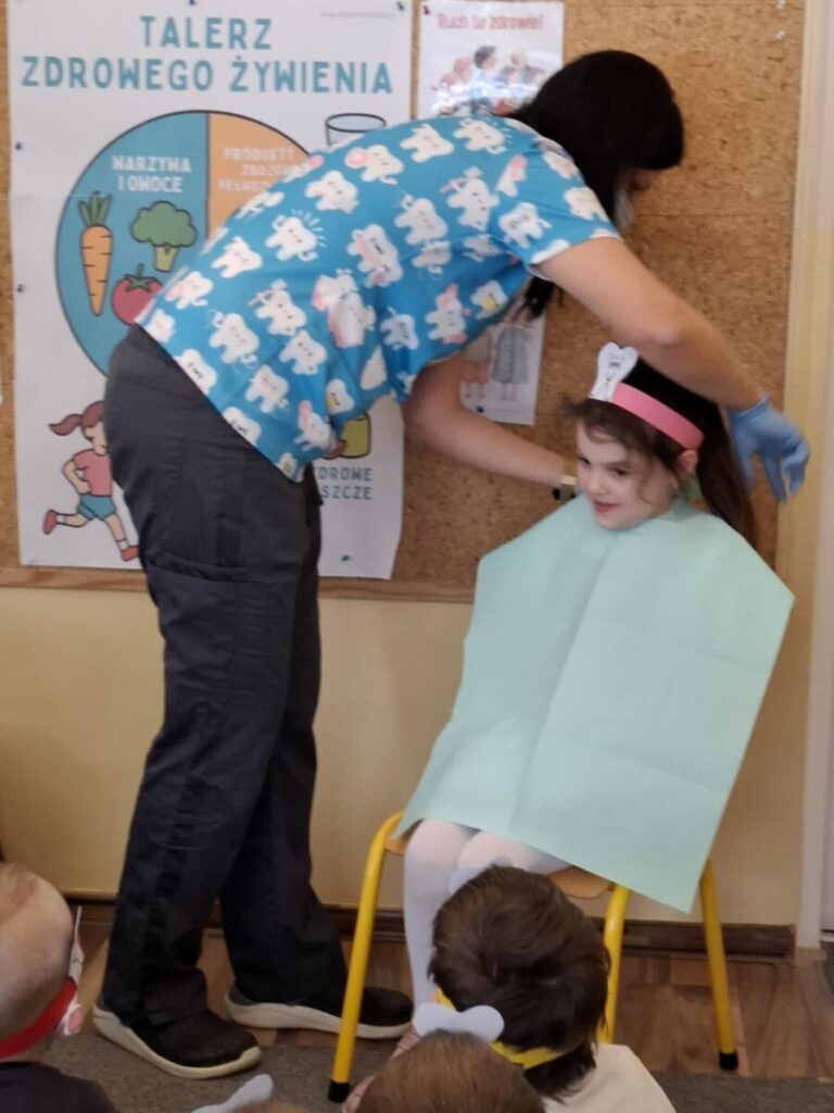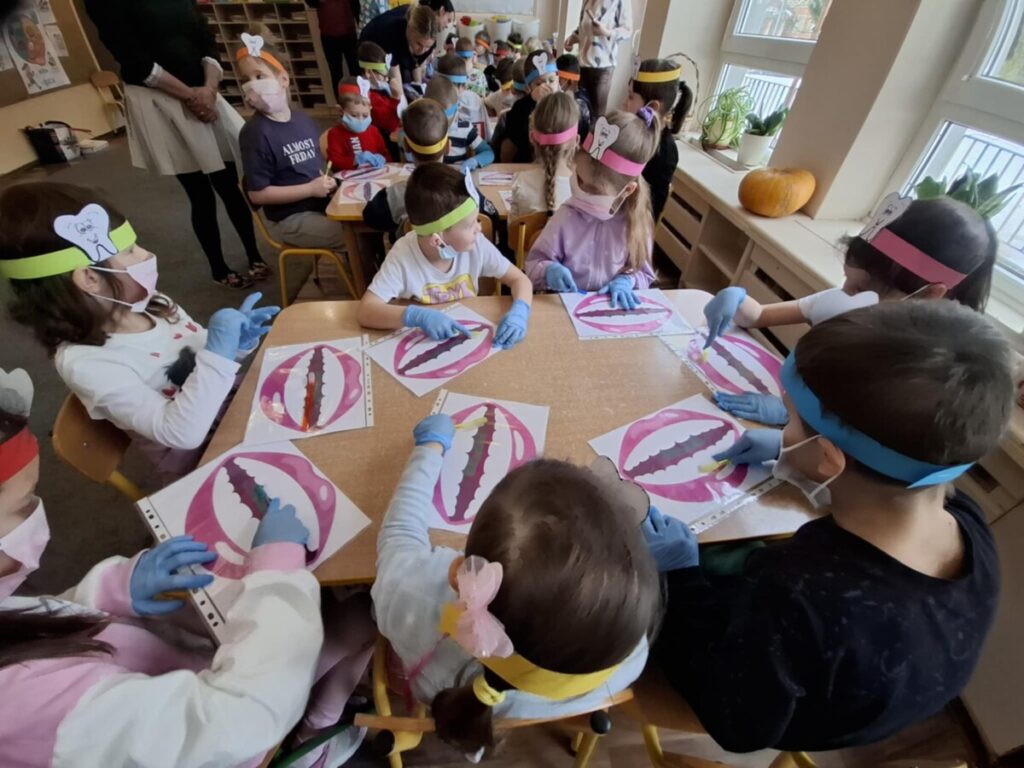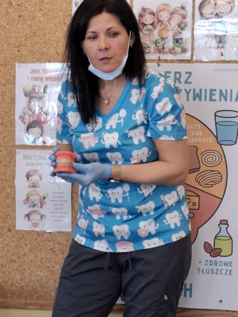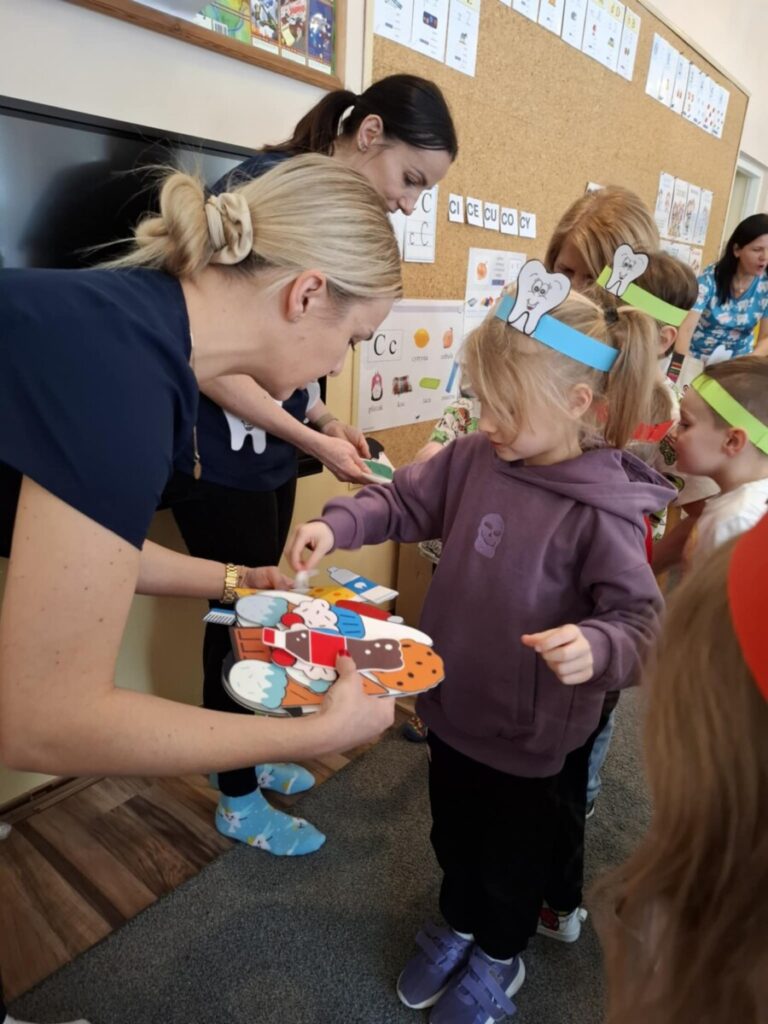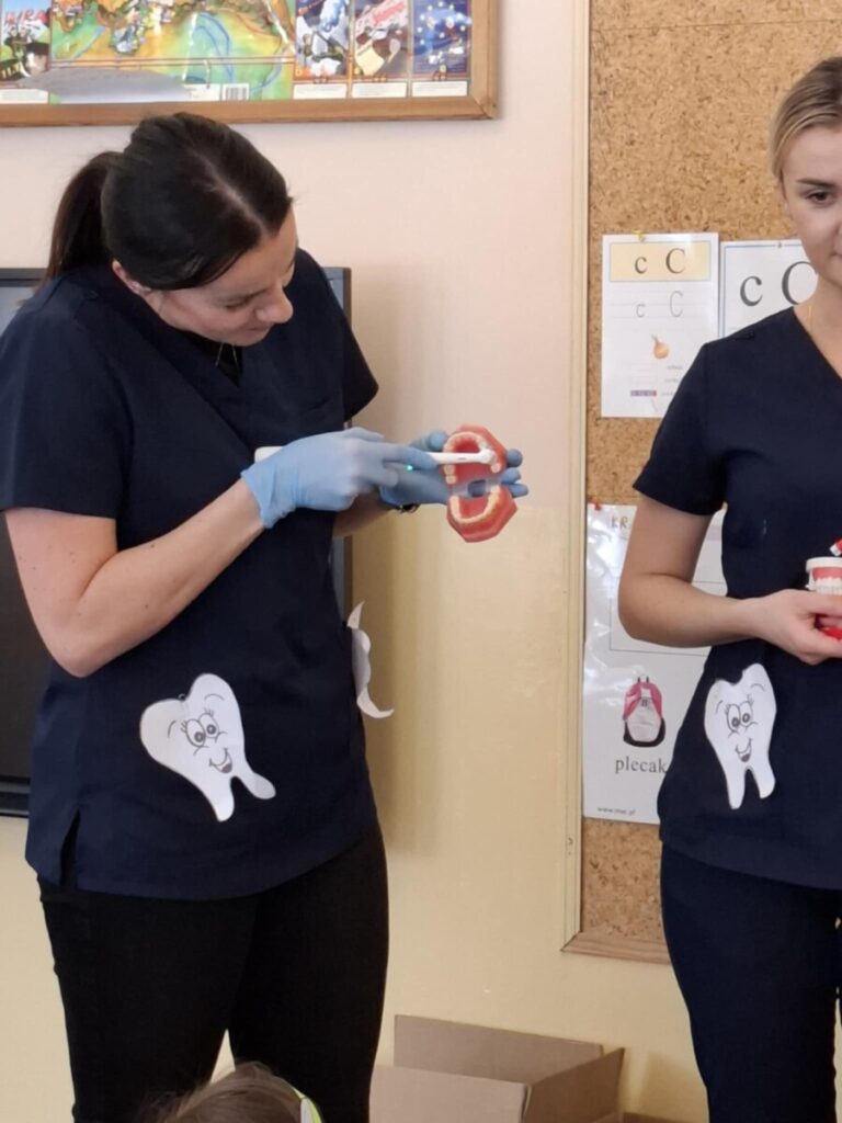 Przedszkolaki z dużym zainteresowaniem brały udział w spotkaniu, chętnie odpowiadały na pytania oraz dzieliły się swoimi doświadczeniami. Największą atrakcją była część praktyczna, podczas której dzieci miały okazję samodzielnie ćwiczyć prawidłowe szczotkowanie zębów.
