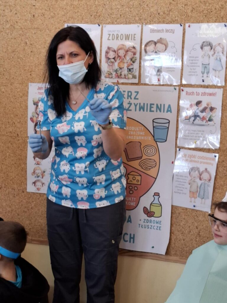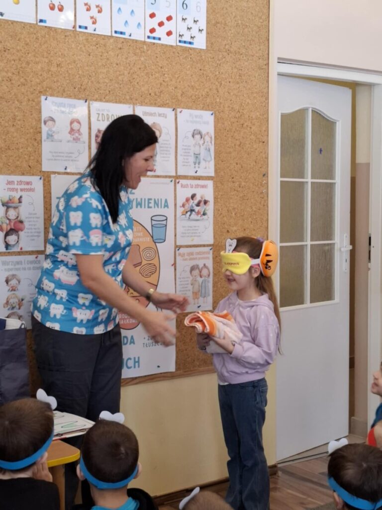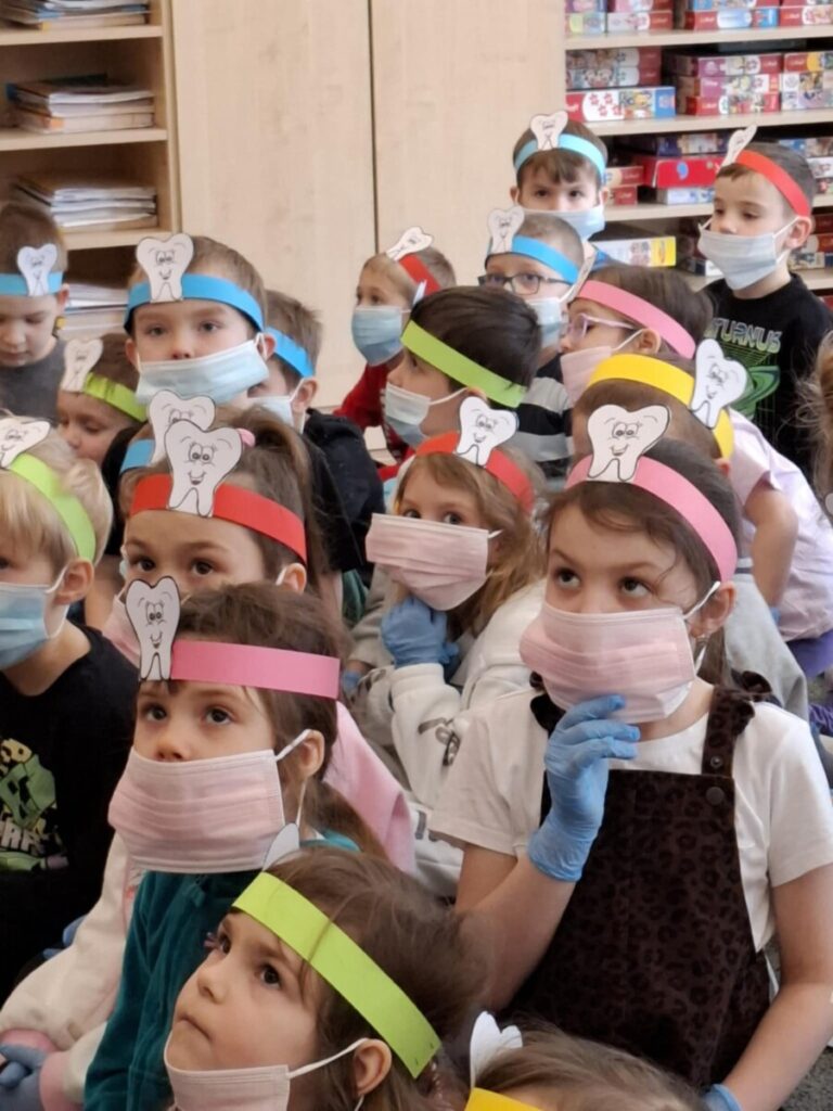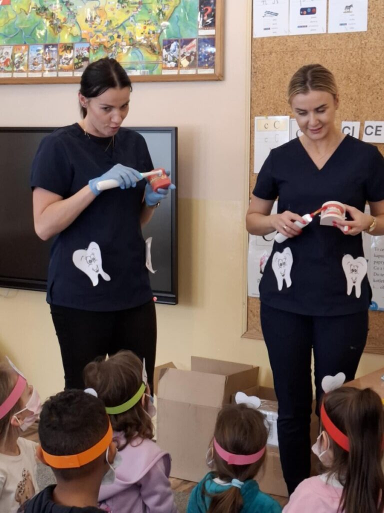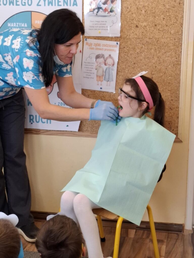Przedszkolaki z dużym zainteresowaniem brały udział w spotkaniu, chętnie odpowiadały na pytania oraz dzieliły się swoimi doświadczeniami. Największą atrakcją była część praktyczna, podczas której dzieci miały okazję samodzielnie ćwiczyć prawidłowe szczotkowanie zębów.