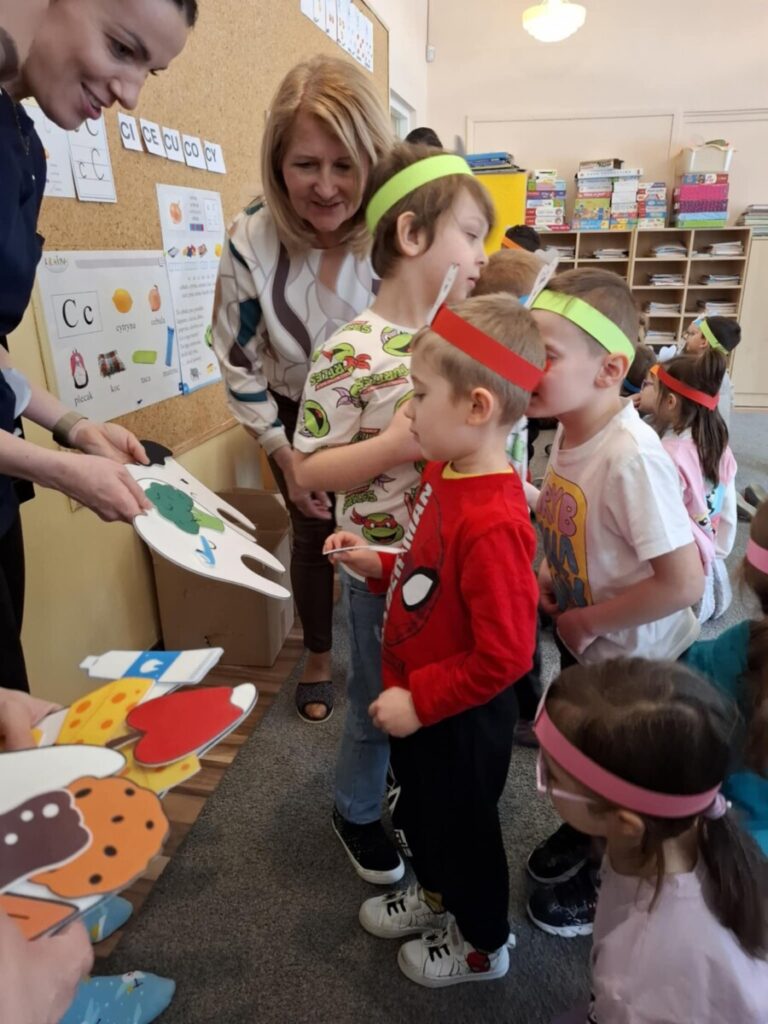 Spotkanie przebiegło w miłej i przyjaznej atmosferze, wzbogaciło wiedzę dzieci oraz było cenną lekcją profilaktyki zdrowotnej. Serdecznie dziękujemy Rodzicom Krzysia oraz paniom asystentkom za zaangażowanie i przygotowanie ciekawych warsztatów, które z pewnością zaprocentują w codziennych nawykach higienicznych naszych przedszkolaków.